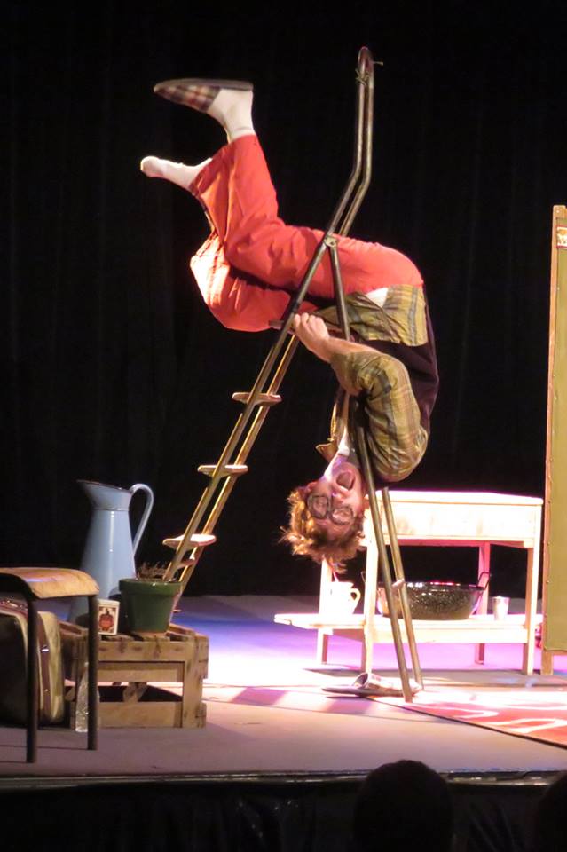 Dessus, dessous, et même dans les recoins d’un paravents, tous les lieux deviennent prétexte à l’espièglerie. Il évolue dans une autre réalité, les mots n’existent pas, les objets se trémoussent et n’aspirent plus aux mêmes fonctions, le décor change de place et les chaises s’apprivoisent.